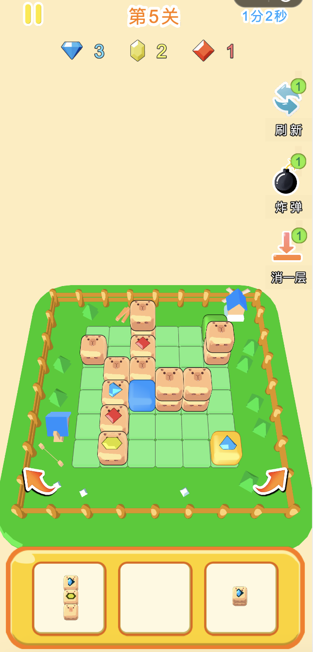 这款游戏《砖块世界》是3D视角和玩法的方块消除类游戏,分为闯关和经典两种玩法。