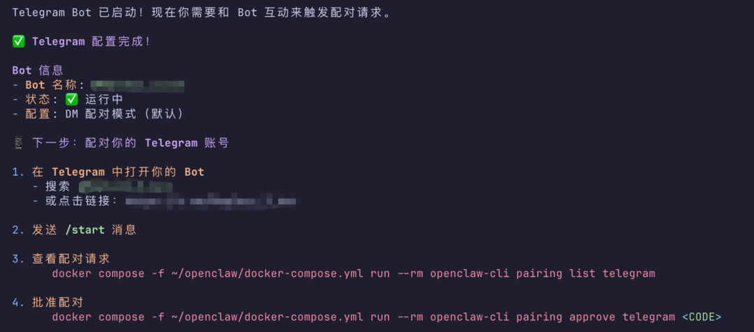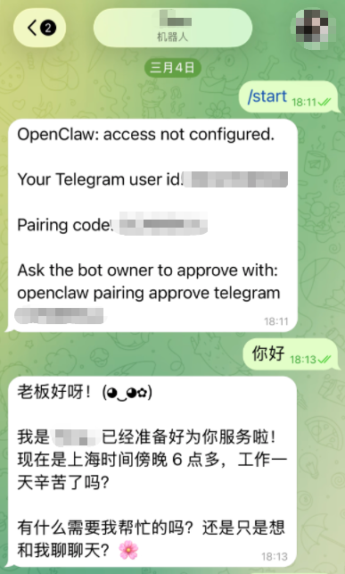然后复制Telegram发给你的验证码,在本地web页面验证一下:“帮我配对Telegram,验证码是