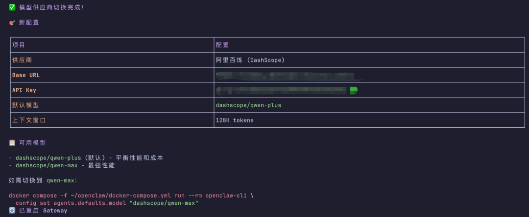 你也不需要自己去配置,直接说:“切换模型供应商,使用xxx平台xxx模型,api key是:xxxxxxxxxxxxxx”。