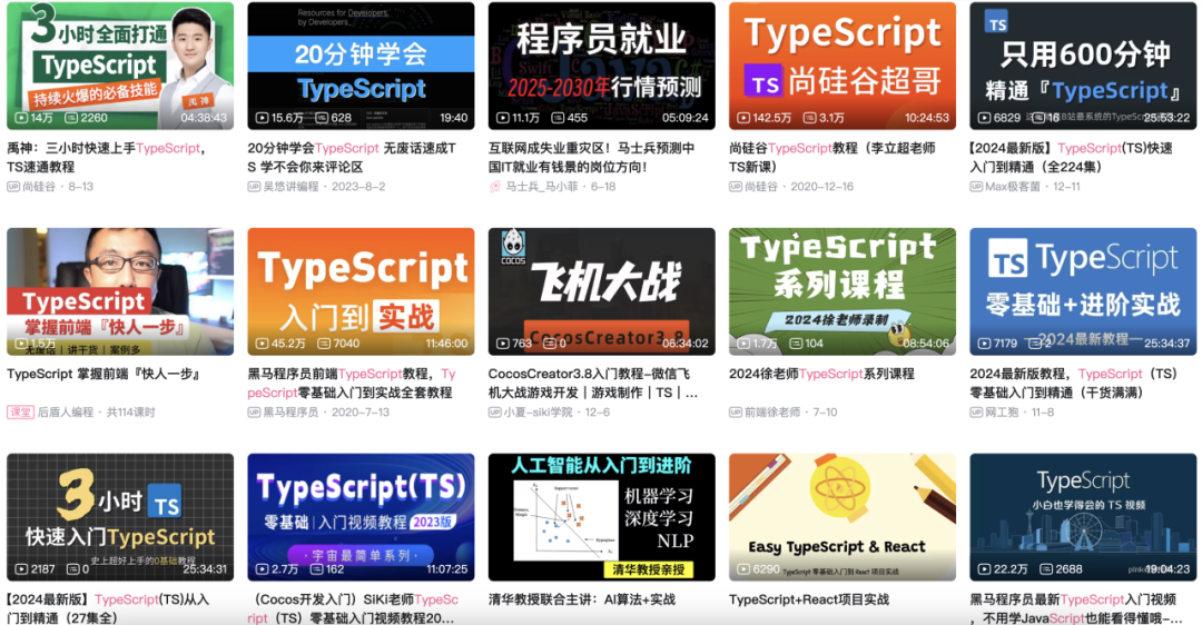 当然视频网站的资源学起来更直接:哔哩哔哩上就有不少优质TypeScript教程,新手友好,跟着视频操作更直观。