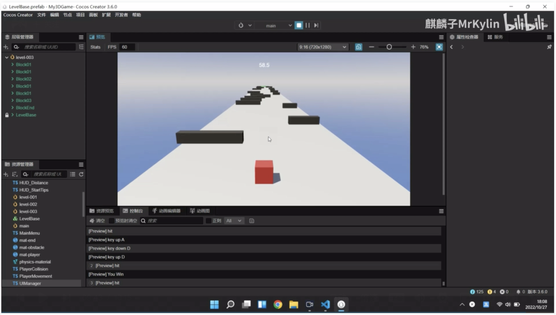跟着麒麟子的《方块先生》课程学习3D基础功能,其中涉及到了光照、阴影、模型、材质、脚本、界面、事件处理、关卡编辑等各个方面,很实用。