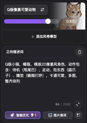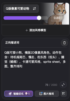 可爱的宠物形象是游戏的核心,需要有一套统一提示词,既能清晰描述不同动物的特点,还能保证画风的的一致。