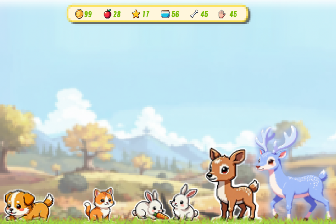 我一直想做一款休闲挂机类的小游戏,主题是「养宠物」。这类游戏的核心体验其实很简单:你有一片小天地,养一些可爱的小动物,它们会慢慢成长、互动,玩家可以轻松挂机,也可以偶尔点进来照看一下。