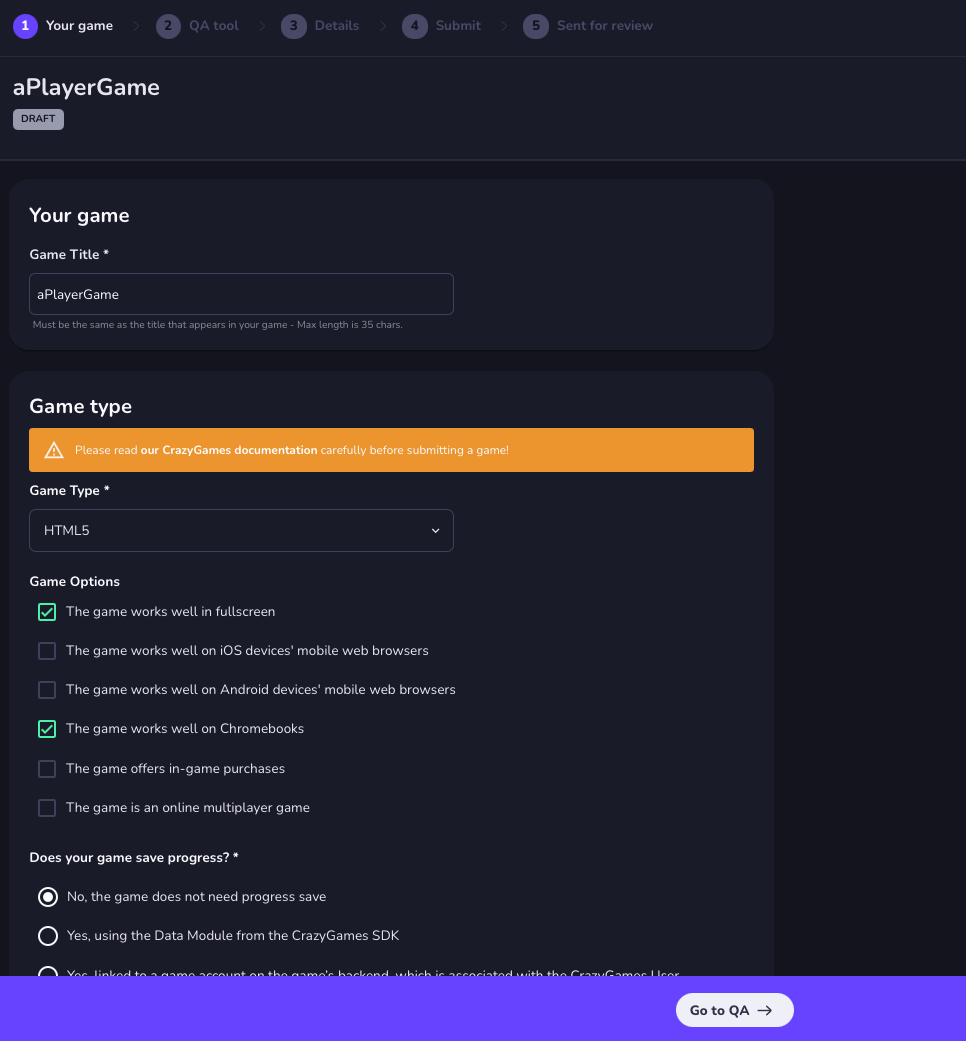 最后一步提交审核,CrazyGames会审查你提交的代码和信息,一般在几个工作日内就能通过,然后会直接发布到平台上;如果没有通过审核,他们也会提供反馈,你就根据反馈修改游戏并重新提交。