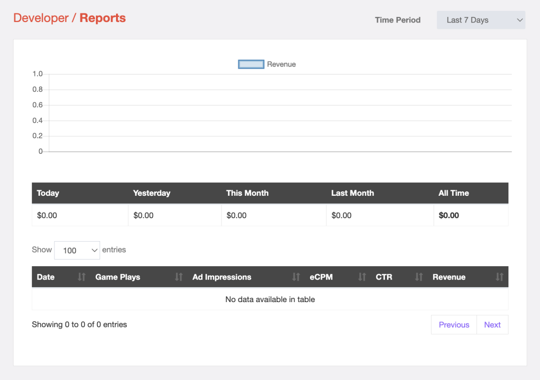 作为开发者,GameMonetize 的核心变现模式是通过广告收入。平台提供的SDK非常容易集成,平台会根据广告展示和点击情况进行收益分成。