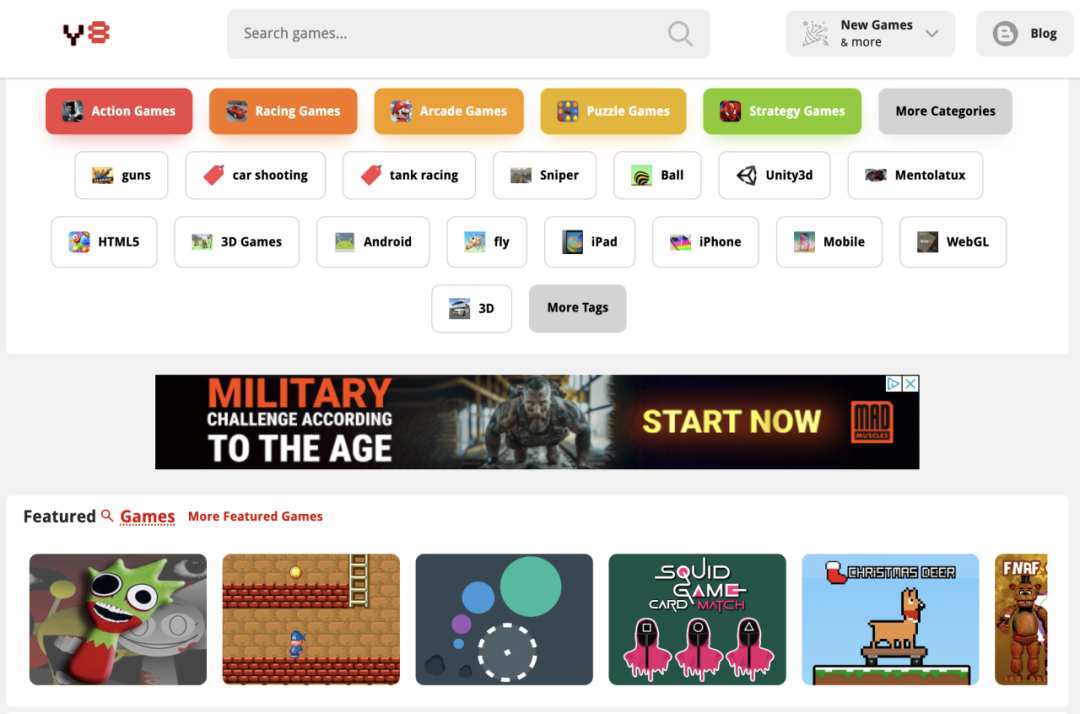 还有一个非常有意思的小东西,GameMonetize为所有人提供了一套免费的CMS游戏内容管理系统。**Arcade CMS (v7) 专为小游戏发行商设计,帮助他们快速建立自己的在线游戏网站。**我看了一下,通过定制和修改主题,完全可以模仿很多知名游戏平台。例如这样的: