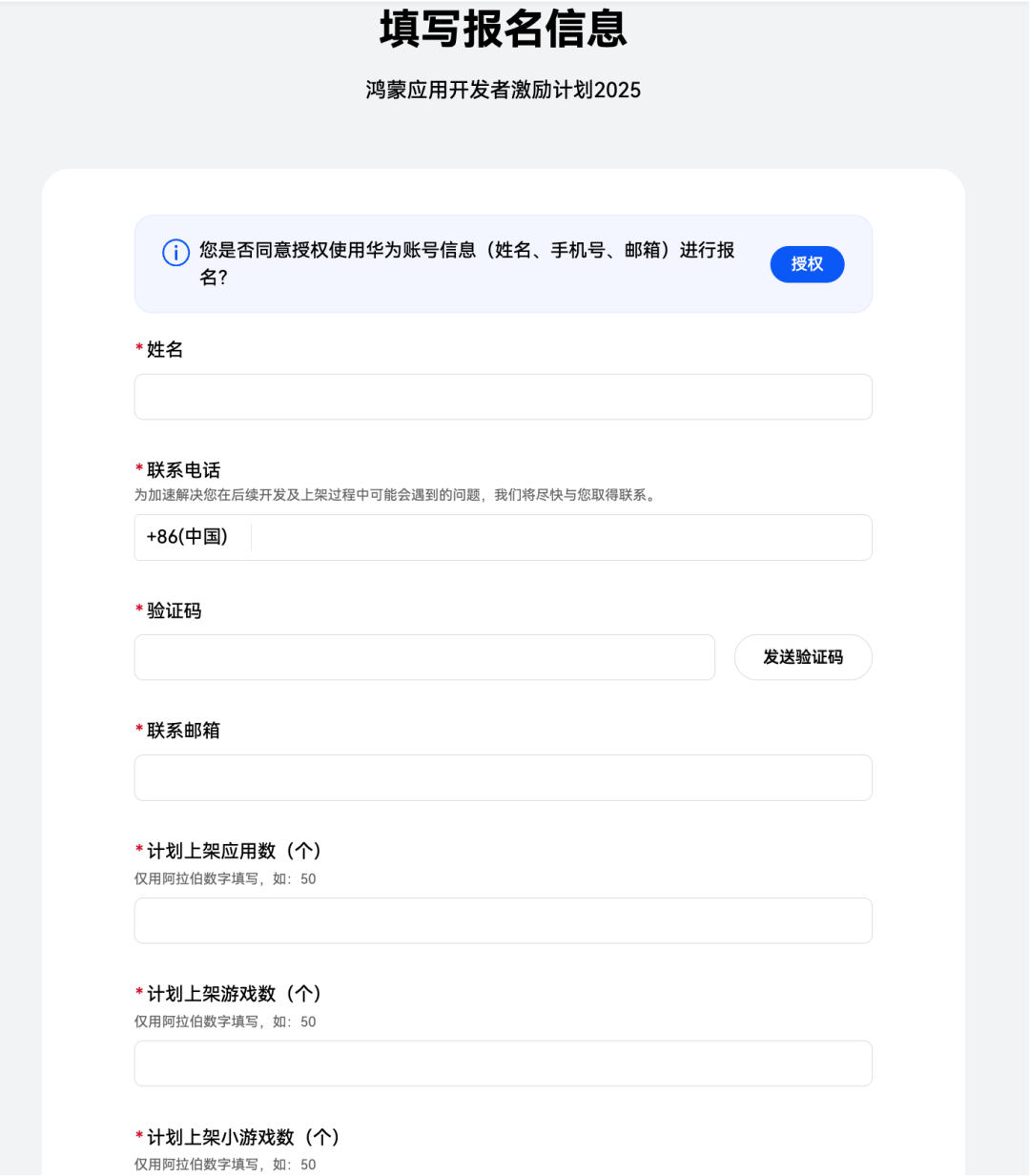 注意:报名账号需为最终应用上架的开发者账号,报名时签署了计划的相关协议。