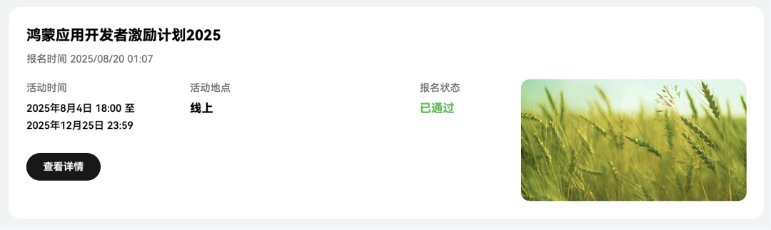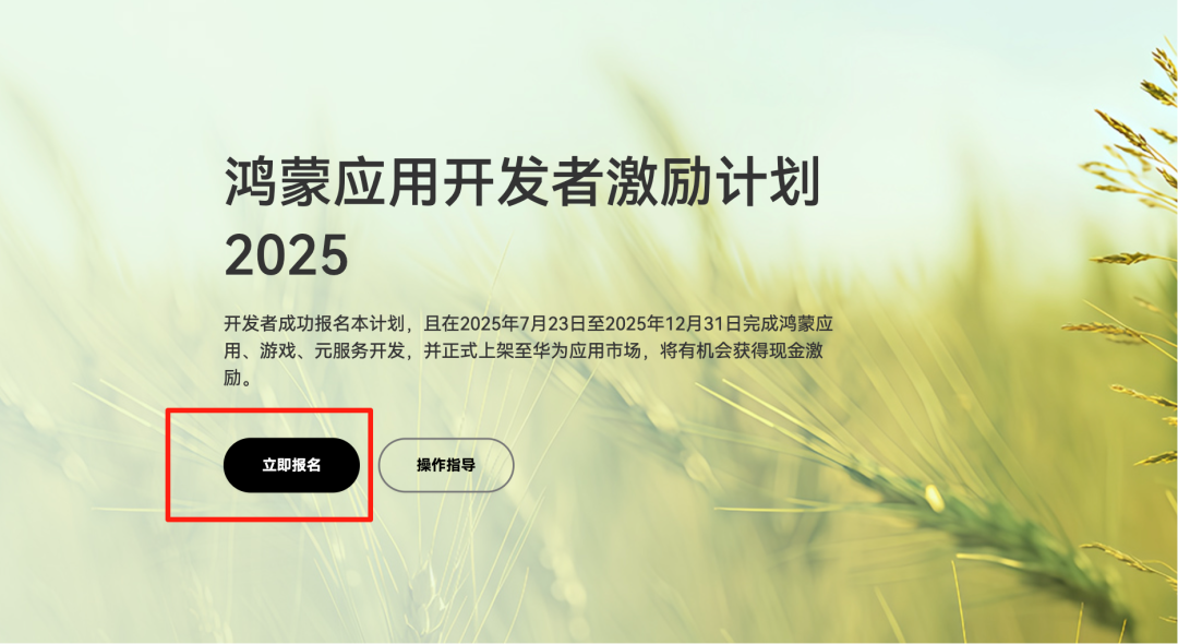 先报名活动。去鸿蒙开发者官网就能看到活动海报,点击立即报名。
