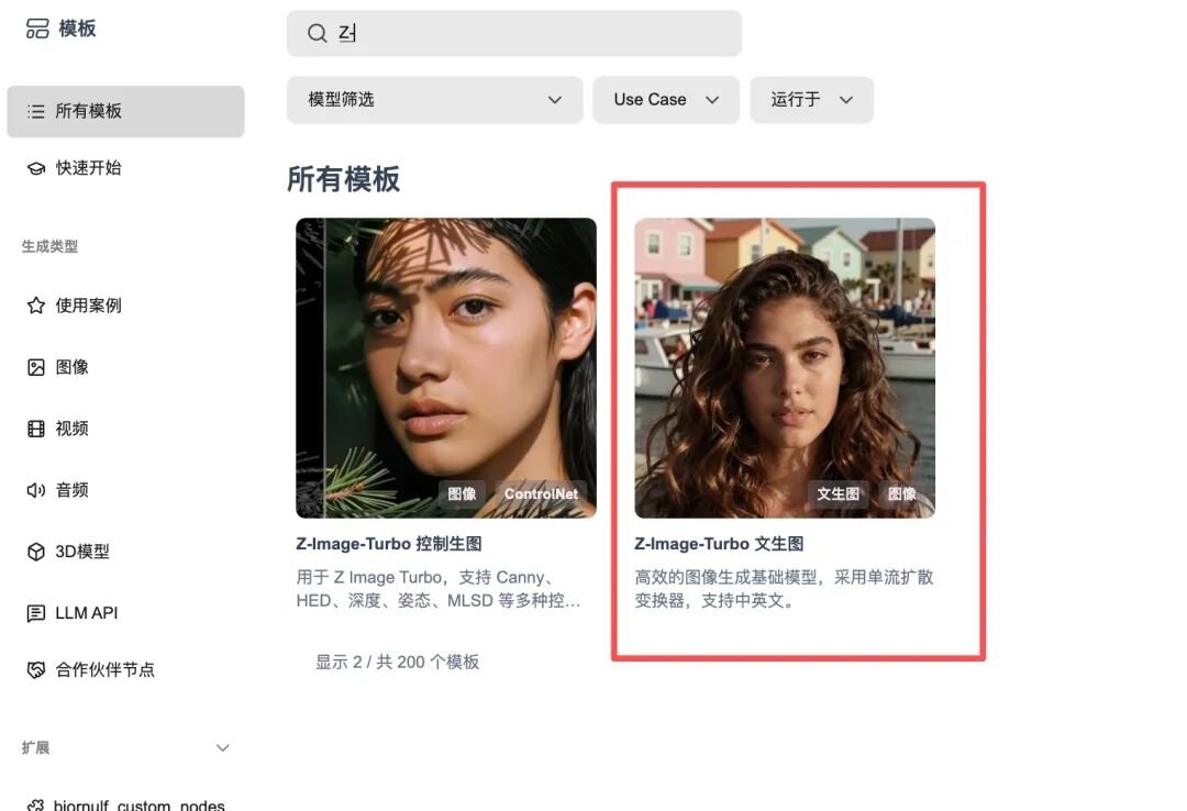 ComfyUI 已经提供了 z-image-turbo 的流程模板,直接从模板管理中选择即可: