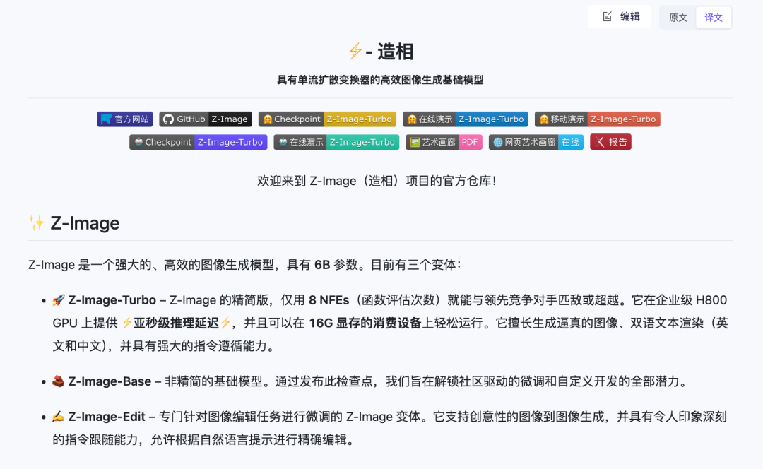 Z-Image-Turbo 的来历还是很有渊源的,他跟 Qwen-Image 都是阿里通义体系的产品,由不同团队开发。Z-Image 是通义实验室“造相”项目于 2025 年 11 月底推出的 6B 高效基础模型,主打轻量、快速与低资源部署。