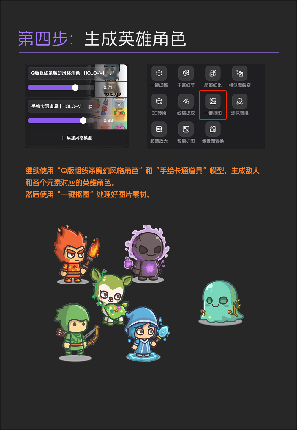 每张图都是独立立绘,然后我们使用一键抠图功能,所以这一步也很快就搞定了。