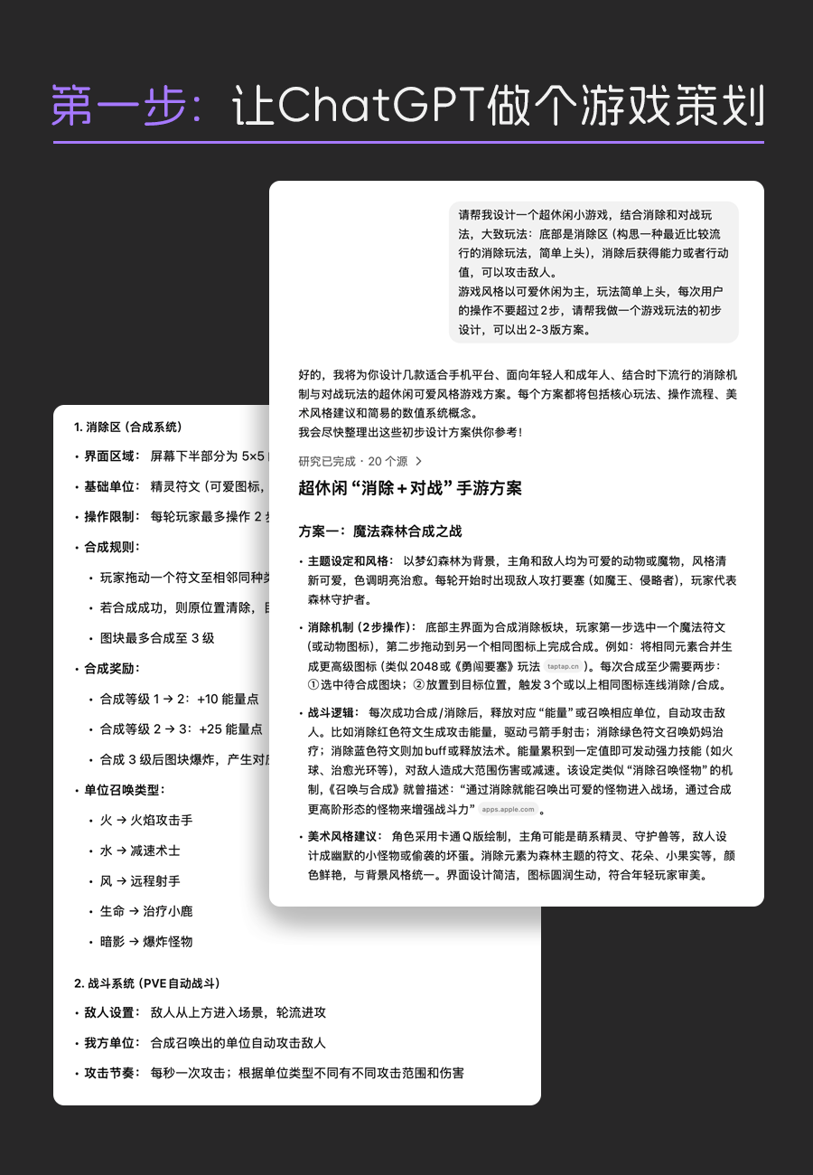 我先用 ChatGPT 帮我构思游戏玩法: