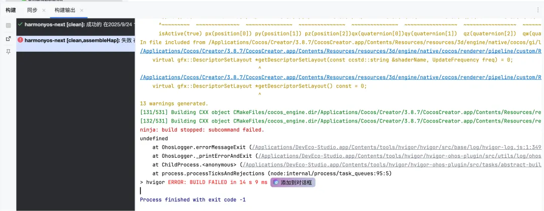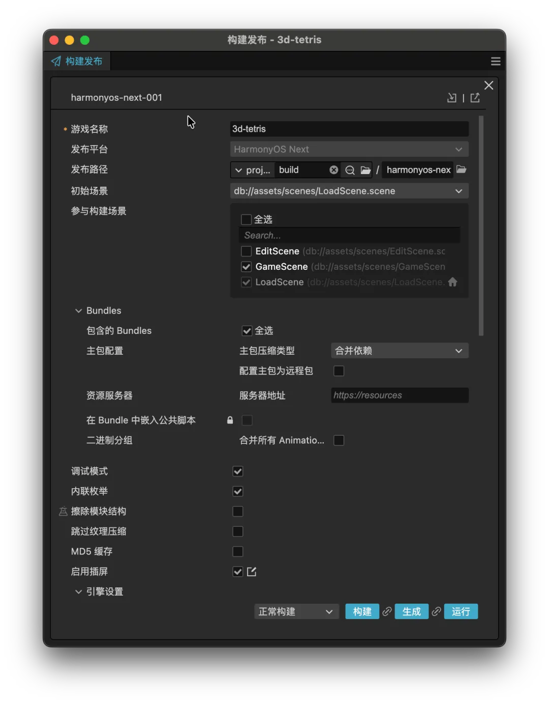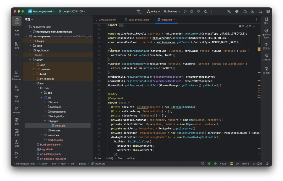 构建完成后,工程相对游戏项目路径在:native\engine\harmonyos-next。把工程导入到DevEco Studio中。