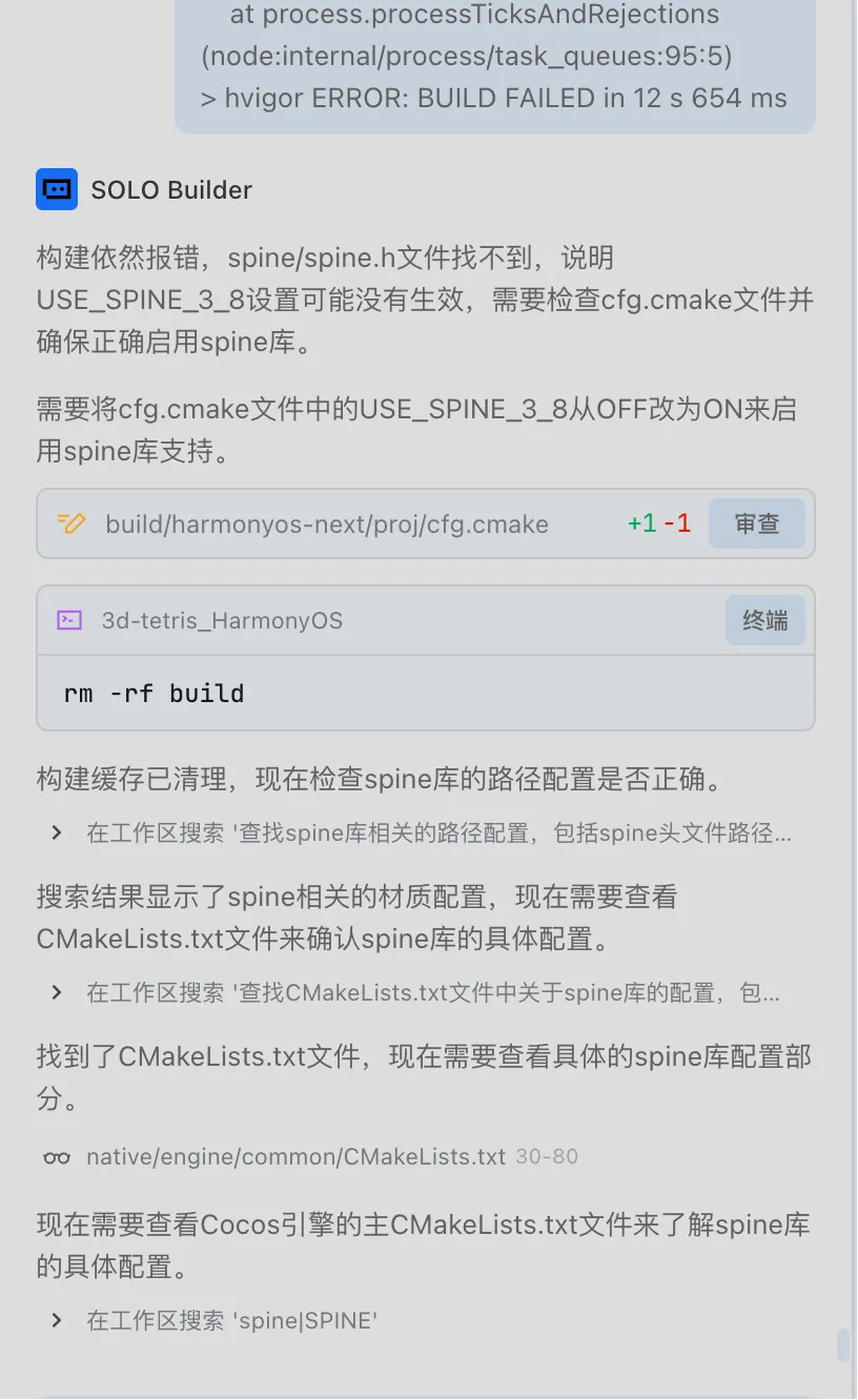 果然,又报错了。继续丢给 Trea。经过几轮来回修复,终于迎来了久违的提示:“Build Successful”!