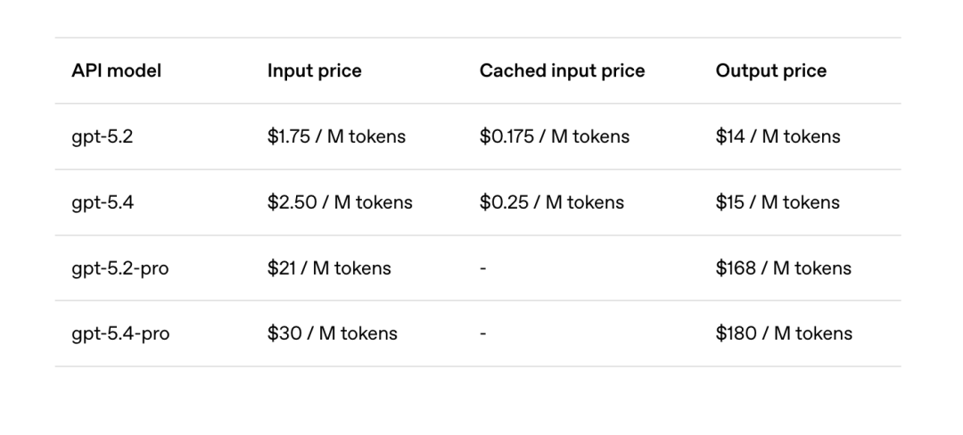 GPT-5.4 的 API 定价高于 GPT-5.2: