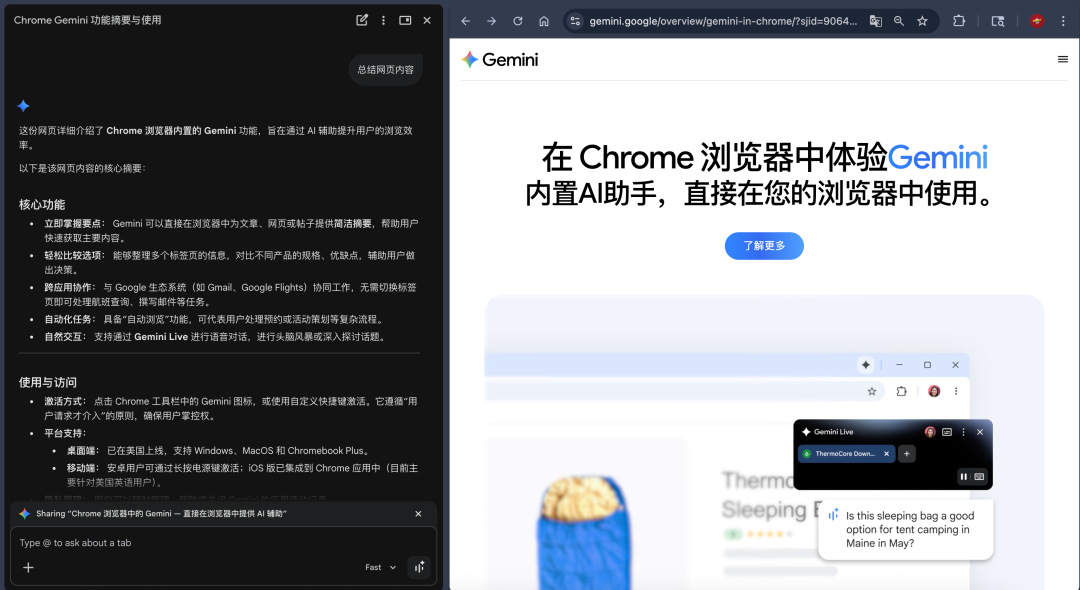 只能说,现在的 Chrome 只是给 Gemini 搬了把椅子坐在旁边,什么时候它们能融为一体,才是 Chrome 真正封神的时刻。