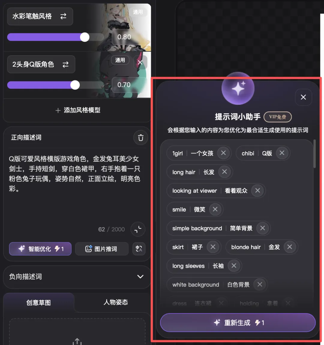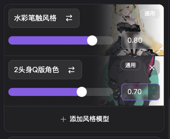 我在 Holopix 里选择了适合横版游戏的模型。这里我用到的是:【水彩笔触风格】 + 【2头身Q版角色】